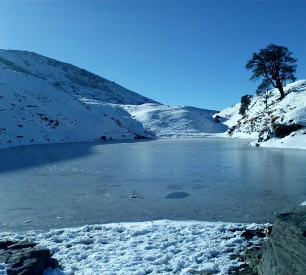 The gradual ascent of rolling hills, the steep slopes, and the thrill of the unknown are what make the Brahmatal Trek so exciting. This route is suitable for both beginners and experienced trekkers, offering a unique adventure in the heart of the Himalayas. The trek is mainly under forest cover, which reduces the risk of altitude sickness. It will provide you with a thrilling winter experience, with the sweet, mellow sound of falling snow, a fantastic trail, and the silence of the oaks and rhododendrons. This trek is a perfect choice for shutterbugs, as it offers diverse frames such as snow-laden forests, white-gold high peaks in Alpenglow, and an alpine mountainscape of a single tree perched on the icy shores of the Brahmatal Lake.